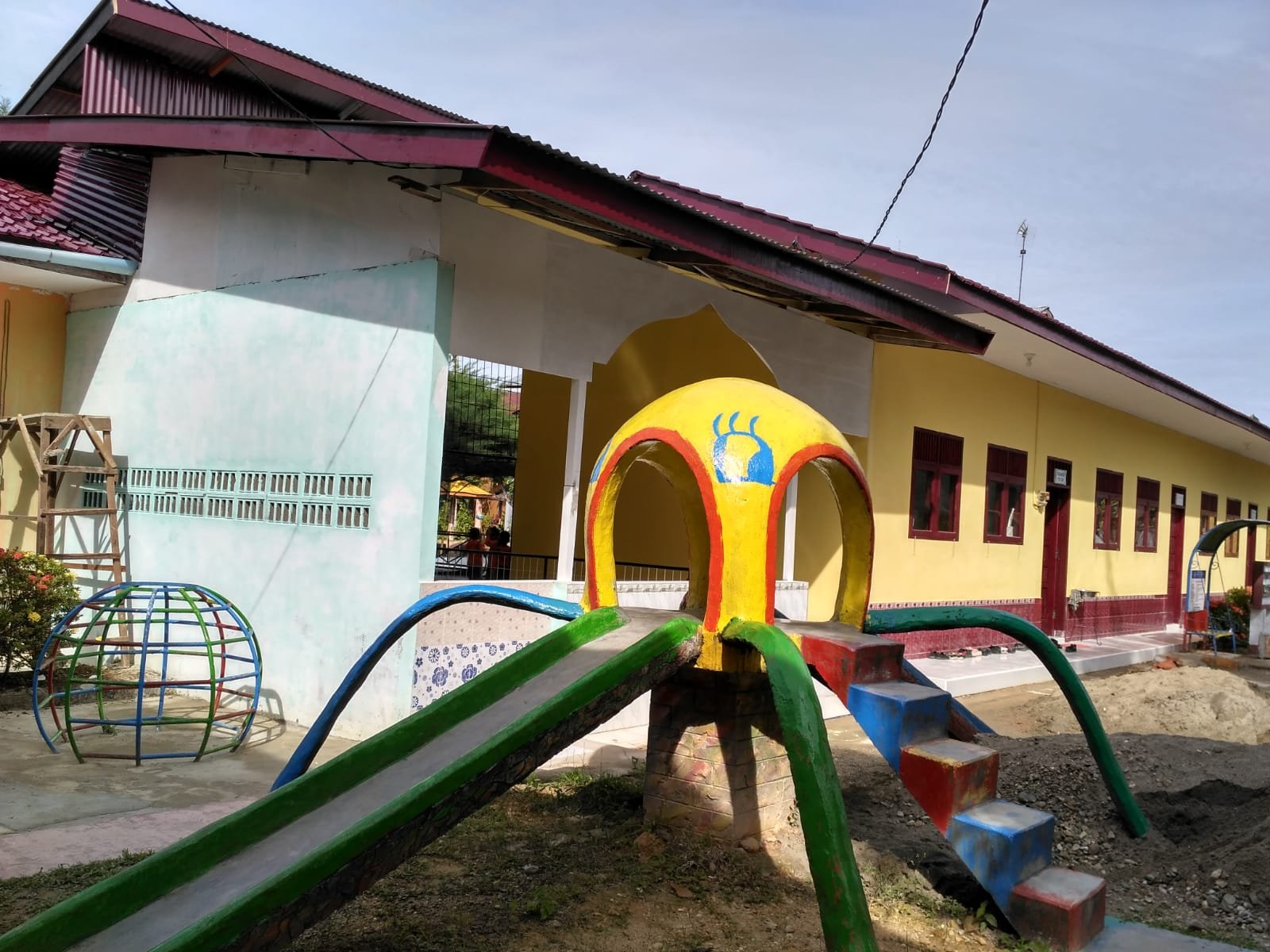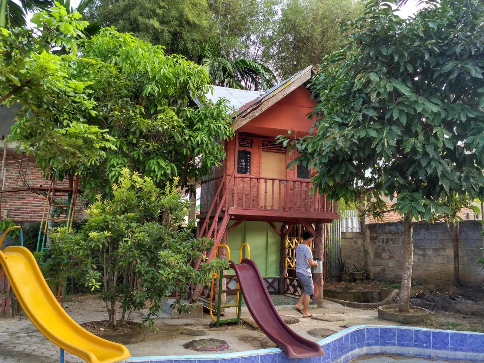 Area Outbond Ruang Serbaguna Mandi Bola Rumah Pohon Arena Bermain Perosotan Cumi Halaman Depan Sekolah Halaman Sekolah Rumah Adat Aceh Area Bercocok Tanam Kolam Renang Panjat Dinding Pojok Baca Ruang Guru Musholla permainan Jaring Laba Taman Bermain Ruang Kelas Jembatan Kantor /Aula Yayasan Teras Belakang Sekolah Sentra Balok